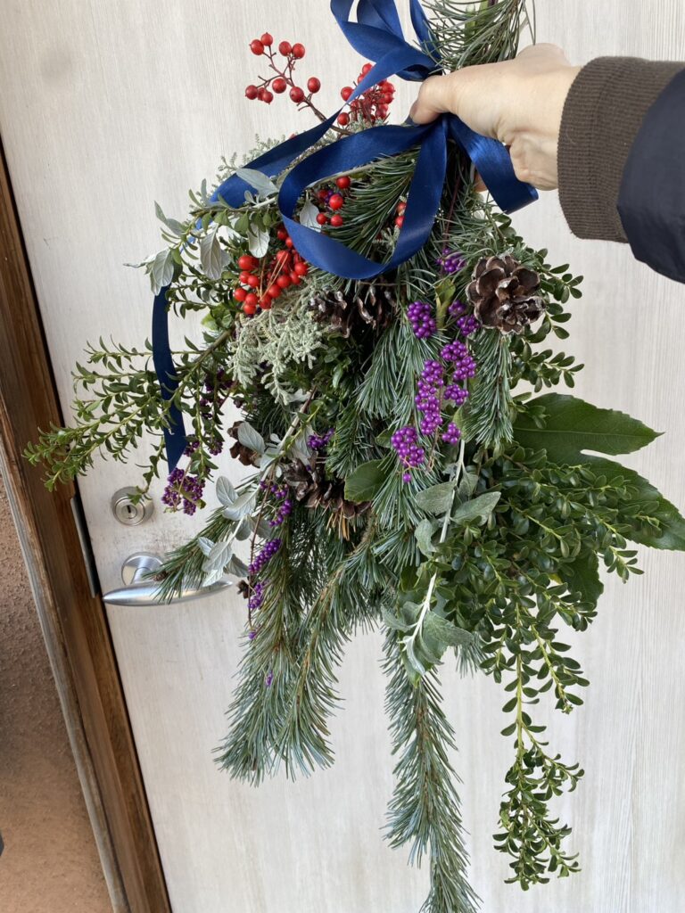 なので、私も負けじと、庭にある木や草花で、スワッグを作ってみました。